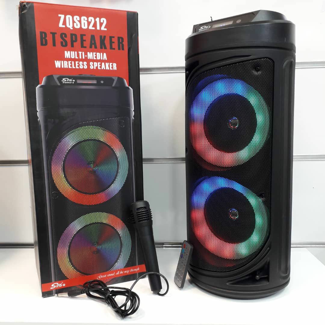 اسپیکر بلوتوثی مدل ZQS-6212 از جدیدترین مدل های سری ZQS به شمار می رود. این اسپیکر با داشتن درایور 13 اینچی، از قدرت پرتاب صدای بهرهمند است و در محیطهای باز و بسته عملکرد قابل قبولی را به مخاطب ارائه میدهد. این اسپیکر بلوتوثی ساختار مقاوم و مستحکمی دارد. این ساختار دارای یک روکش با کیفیت است که مقاومت بالایی در برابر خط و خش و ضربه دارد. بنابراین میتوانید با خیالی آسوده ZQS-6212 را همراه خود به سفر و طبیعت ببرید. اما این اسپیکر تنها پخش کنندهی صدا نیست و با داشتن رقص نور جذاب و متغیر میتواند جلوهی زیبایی به مهمانیهای شما ببخشد. افزون بر همهی موارد گفته شد، همراه بودن ریموت کنترل و میکروفون، این اسپیکر بلوتوثی را به یک پخش کنندهی صوتی قدرتمند و حرفهای مبدل ساخته است.