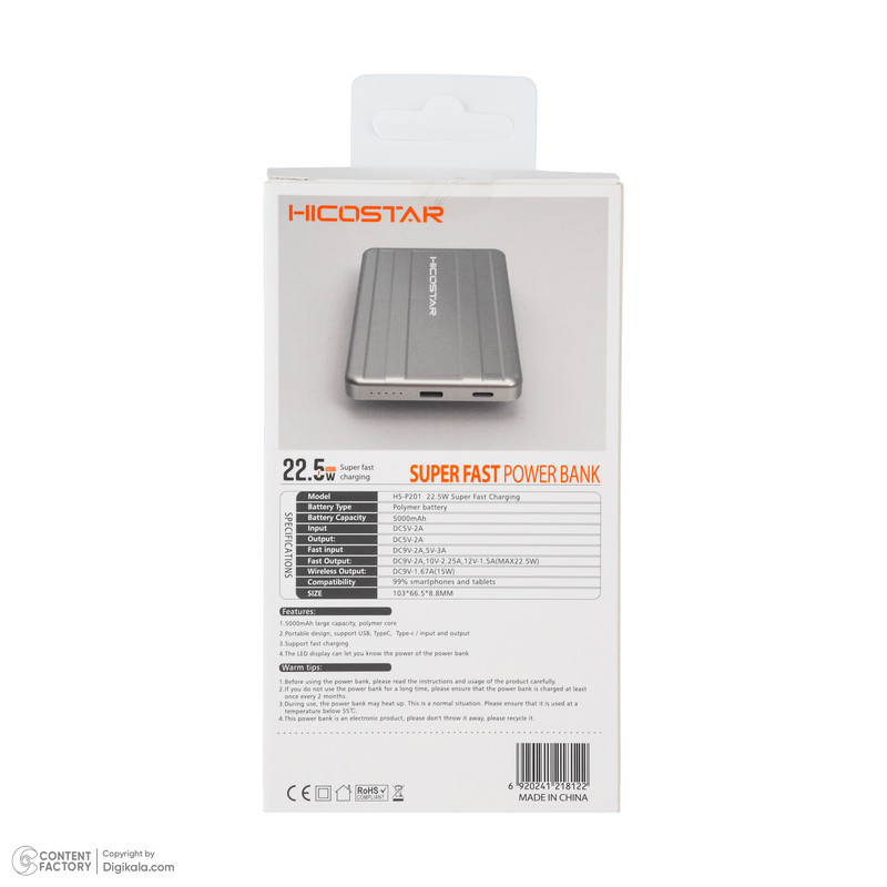پاوربانک هایکواستار مدل HS-P201 ظرفیت 5000 میلی آمپرساعت